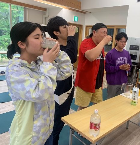 当日はあいにくの雨天でウォーキングはあきらめ健康ダンスプログラム&ごちゃまぜBBQとなりましたが、広島県すみます芸人「藩飛礼」のコンビも黎明館に来ていただき、加計町内の方も参加してみんなで盛り上がりました!